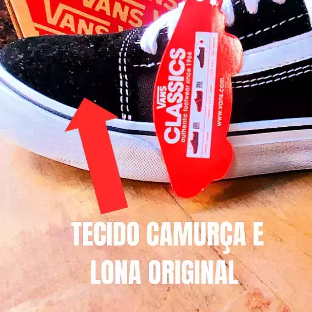 A principal diferença e inovação está na palmilha: enquanto o modelo padrão Vans tem uma palmilha mais simples, a nossa versão Premium inclui uma palmilha em EVA, anatômica e ortopédica, feita para proporcionar um nível superior de conforto e suporte. É o clássico design Vans com um upgrade de conforto único.